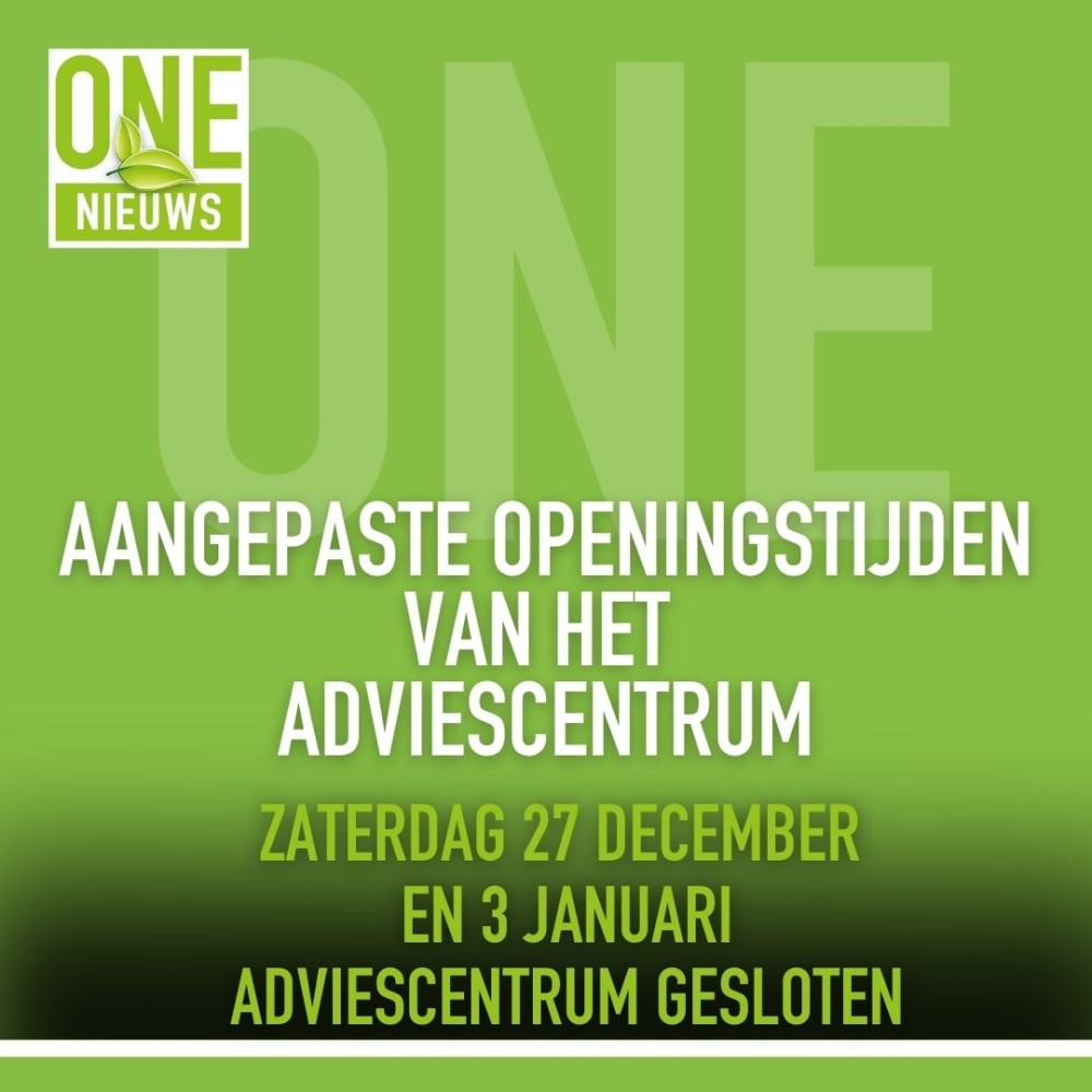 Tijdens de kerstvakantie is het adviescentrum van Oosterhout Nieuwe Energie gesloten op zaterdag 27 december en zaterdag 3 januari.